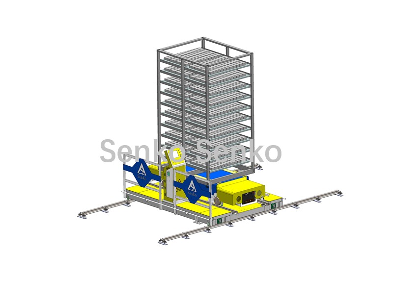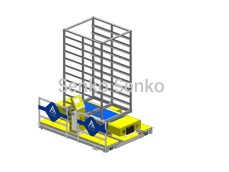 搬运小车上的升降机构,上升将物品托起,小车根据预设的目标行走至指定位置,下降将物品放下,从而实现物品从一个位置转移到另一个位置,即物品转运。(单层上升行程仅有100mm)