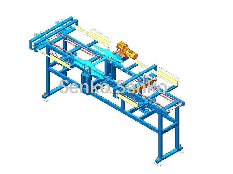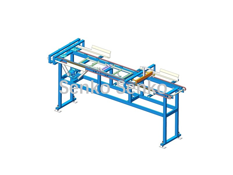 砖板分离后,空托板由链条向前输送,链条输送上可配置翻面机构,实现空托板翻面,而后空托板输推入码板机。
