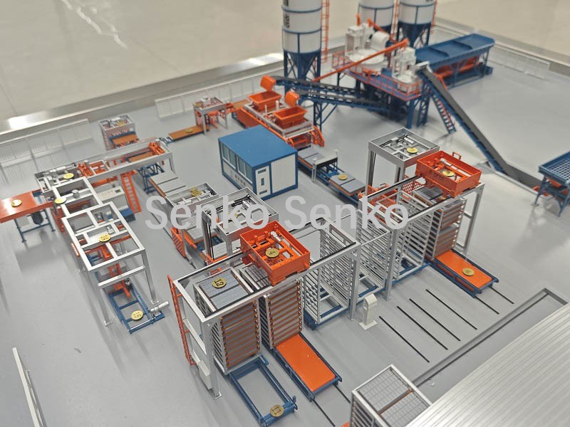 | 7、成型机 | 8、接板机 | 9、升板机 | 10、置砖架输送机 | 11、搬运小车 | 12、摆渡车 |